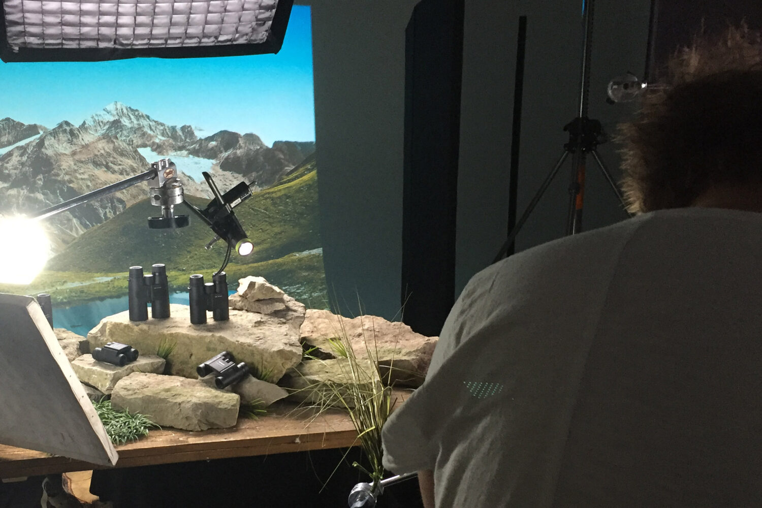 Für die Eschenbach „Arena“ Fernglas Produktfamilie haben wir ein Produktvideo in unserem Studio in Nürnberg realisiert. Hierfür haben wir ein komplettes Natur-Setting nachgebaut und mit einer Projektion im Hintergrund kombiniert.